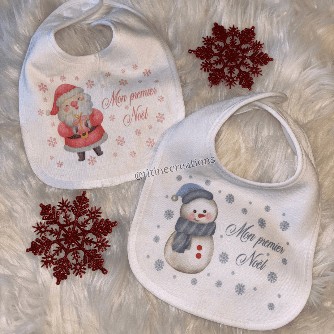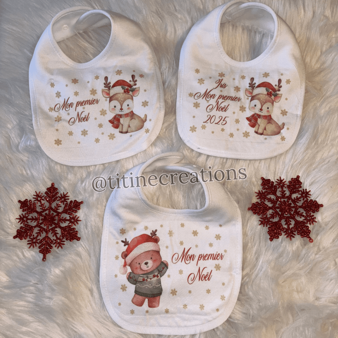 Bavoir « Mon premier Noël » personnalisé avec le prénom de bébé 🎄 Adorable et pratique, il rend ce moment encore plus magique. Une idée cadeau parfaite pour célébrer ce premier Noël unique ! ✨