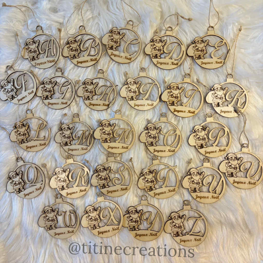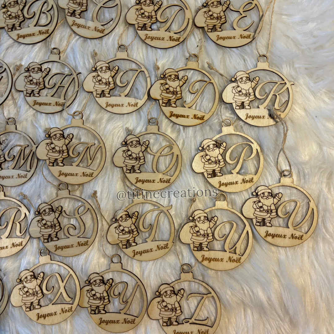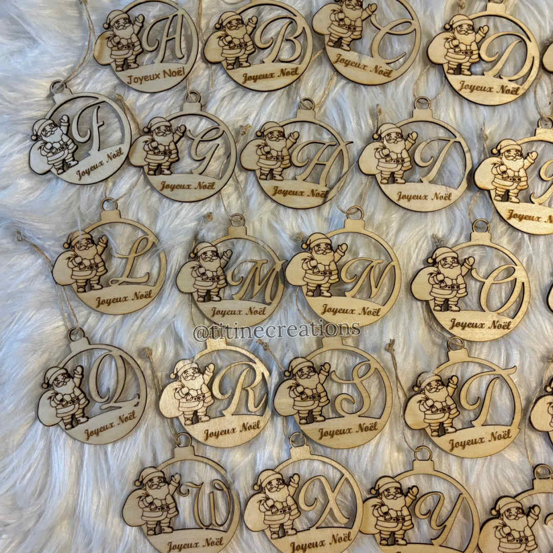 Boule en bois avec initiale, personnalisable avec un prénom ou un petit mot dessous 🎄 Une décoration unique et élégante pour le sapin, idéale comme cadeau personnalisé plein de charme ! ✨