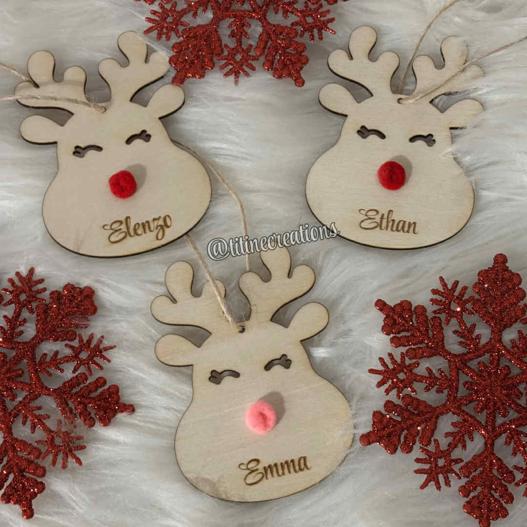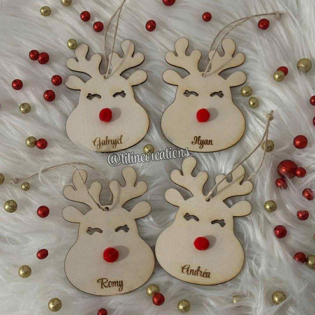 Boule de Noël en forme de renne avec nez en pompon 🎅 Personnalisée avec le prénom de votre choix. Une déco adorable et unique pour un sapin plein de magie et de douceur ! 🎄✨