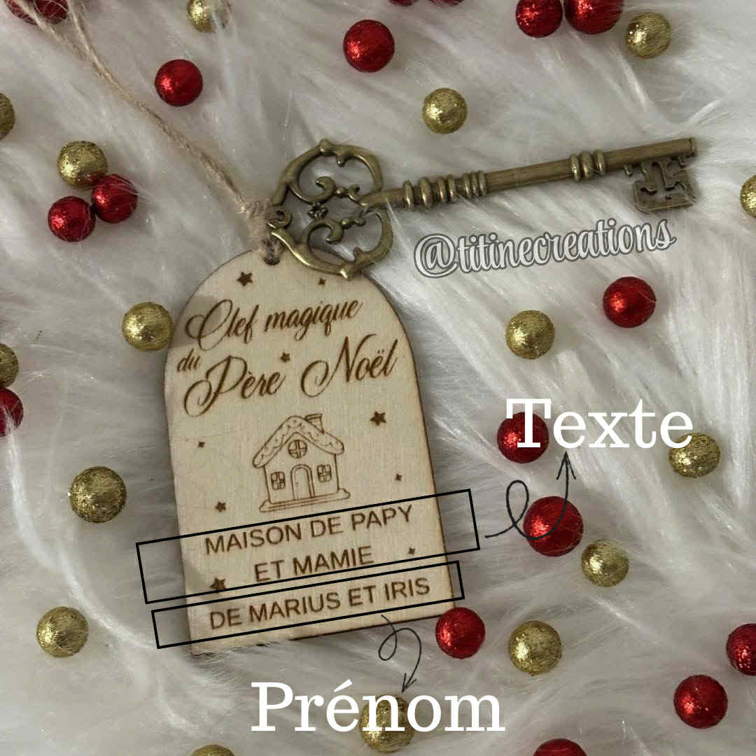 Clé magique du Père Noël personnalisée avec la phrase de votre choix et le prénom de votre/vos enfant(s). ✨ Laissez la magie opérer : le Père Noël pourra entrer déposer ses cadeaux même sans cheminée ! Un souvenir féerique à garder précieusement. 🎅🔑