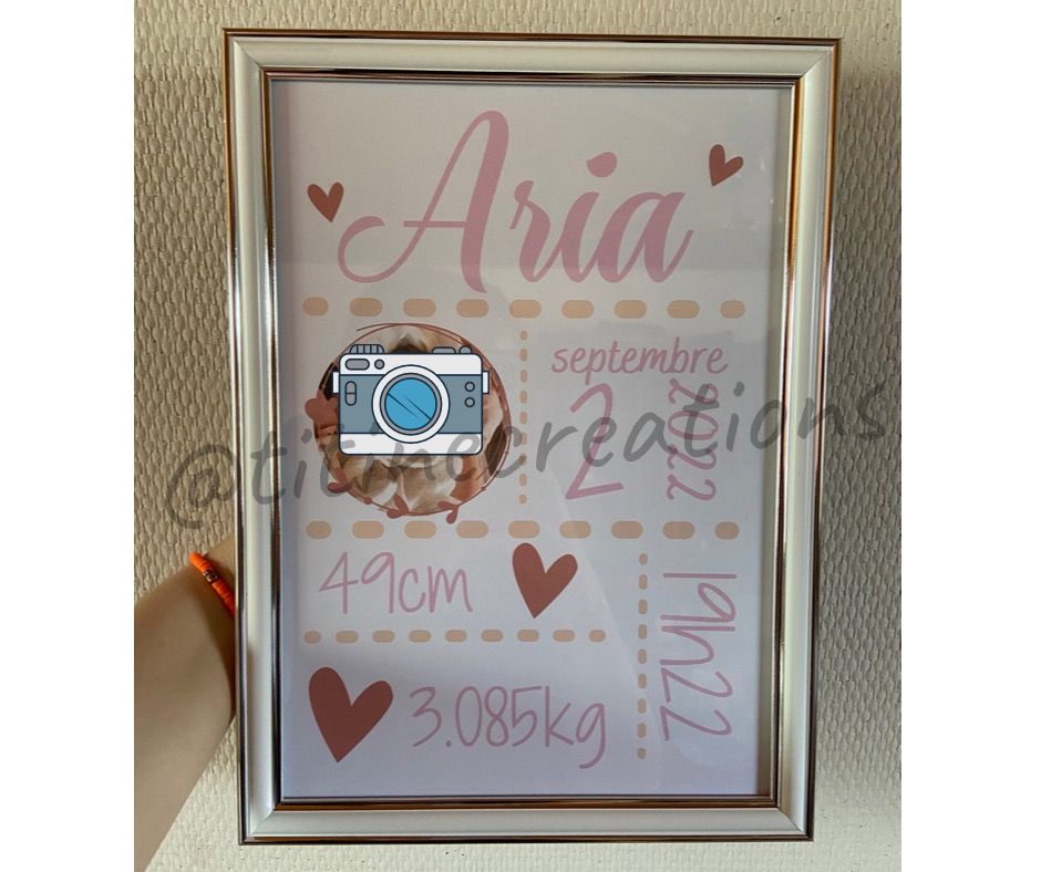 Affiche de naissance personnalisée avec prénom, date, heure, taille et poids 👶 Imprimée sur papier A4 250g (vendue sans cadre). Un souvenir tendre et élégant à offrir ou à encadrer ! ✨