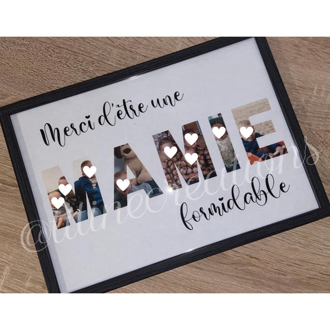 Affiche « Mamie » personnalisée avec 5 photos ❤️ Imprimée sur papier A4 250g (vendue sans cadre). Un cadeau tendre et unique pour mettre en valeur vos plus beaux souvenirs et toucher le cœur de Mamie ! ✨