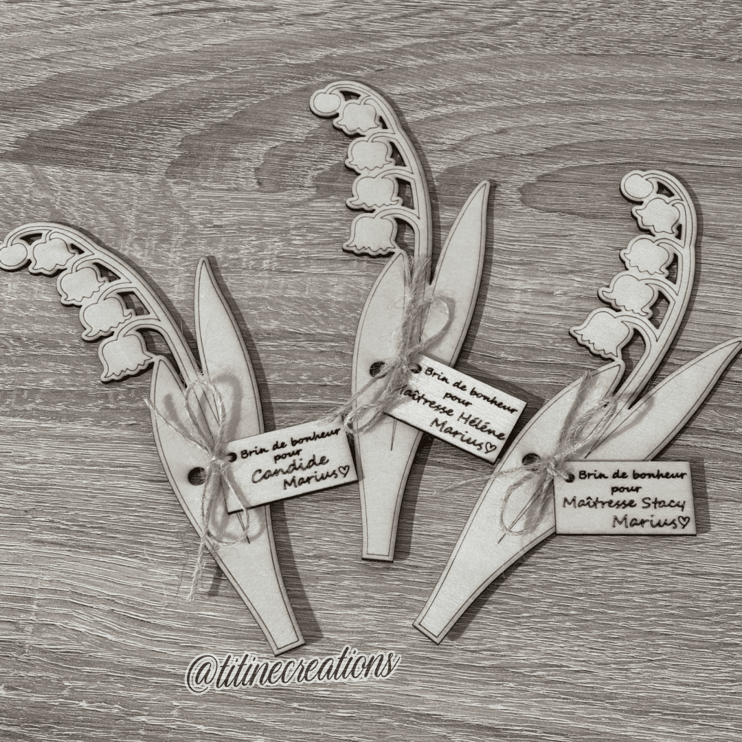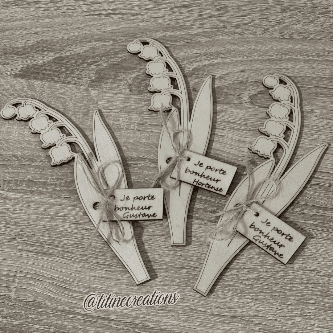 Apportez une touche de douceur avec ce brin de muguet en bois, symbole de bonheur. 🌿 Sa petite pancarte est entièrement personnalisable : prénom, message… un cadeau unique et plein de charme à offrir ou à s’offrir !