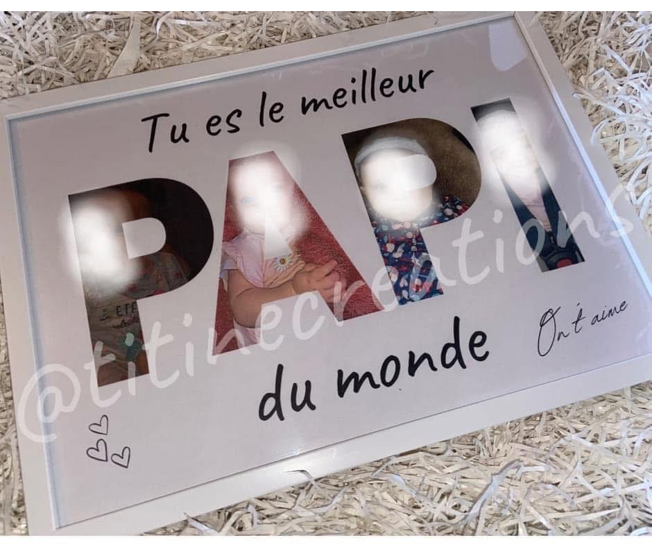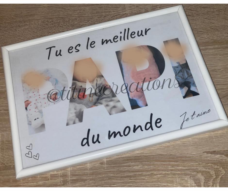 Affiche « Papy » personnalisée avec 4 photos ❤️ Imprimée sur papier A4 250g (vendue sans cadre). Un cadeau tendre et unique pour mettre en valeur vos plus beaux souvenirs et toucher le cœur de Papy ! ✨