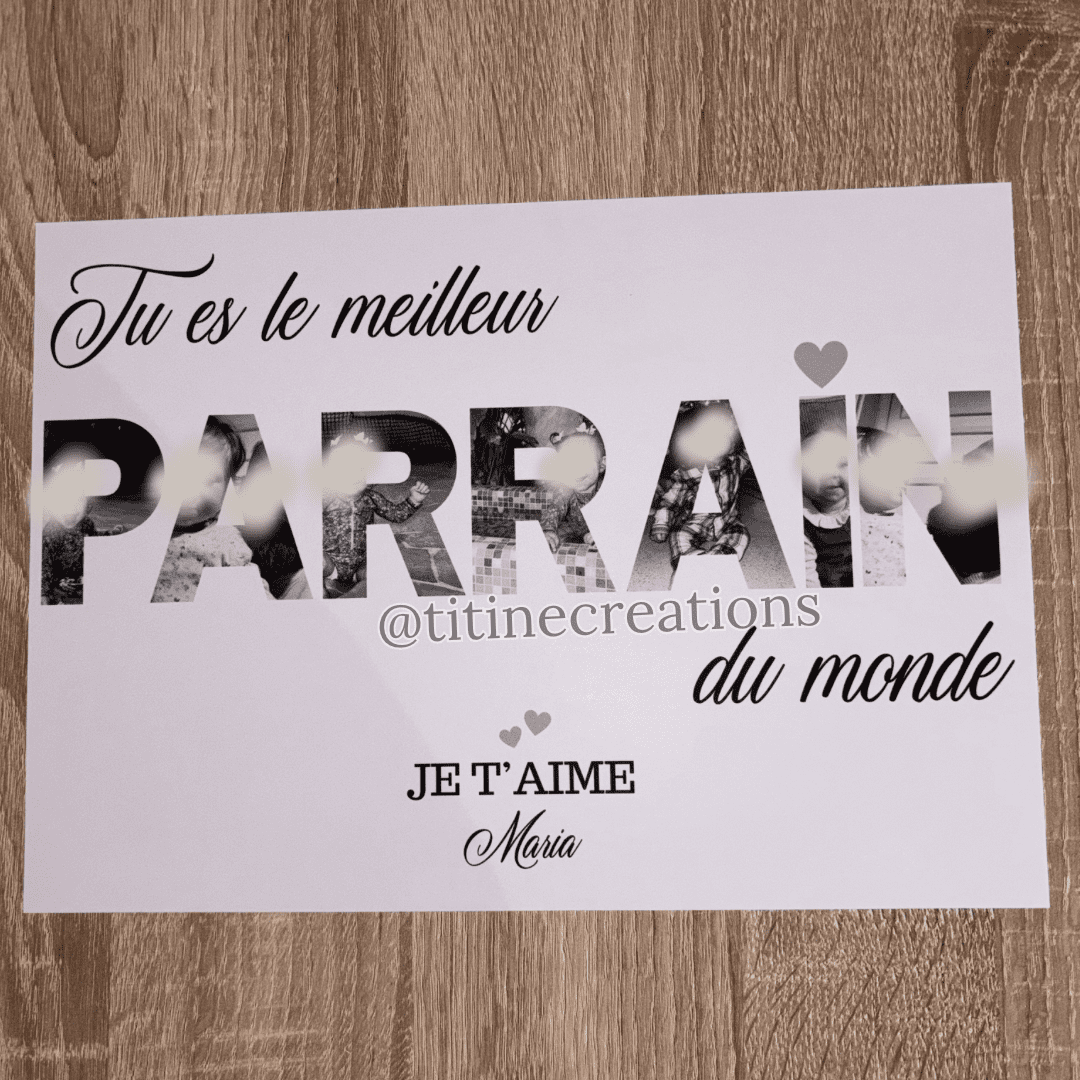 Affiche « Parrain » personnalisée avec 7 photos ❤️ Imprimée sur papier A4 250g (vendue sans cadre). Un cadeau tendre et unique pour mettre en valeur vos plus beaux souvenirs et toucher le cœur de Parrain ! ✨